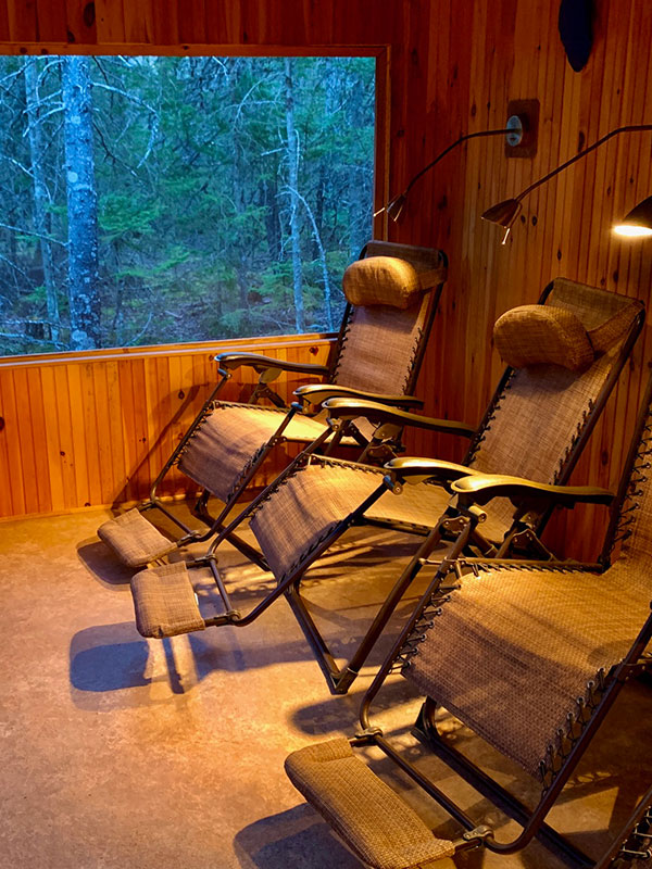 Entspannen Sie sich nach einem ereignisreichen Tag in der wohltuenden Wärme unserer Waldsauna. Die Sauna wird auf 65 – 80 Grad aufgeheizt, eine trockene Hitze. Wir stellen ausreichend Handtücher zur Verfügung. Neben der Sauna können Sie sich in unserer „Entspannungshütte“ aufhalten, wo Sie lesen, träumen oder einfach ein Nickerchen machen können.